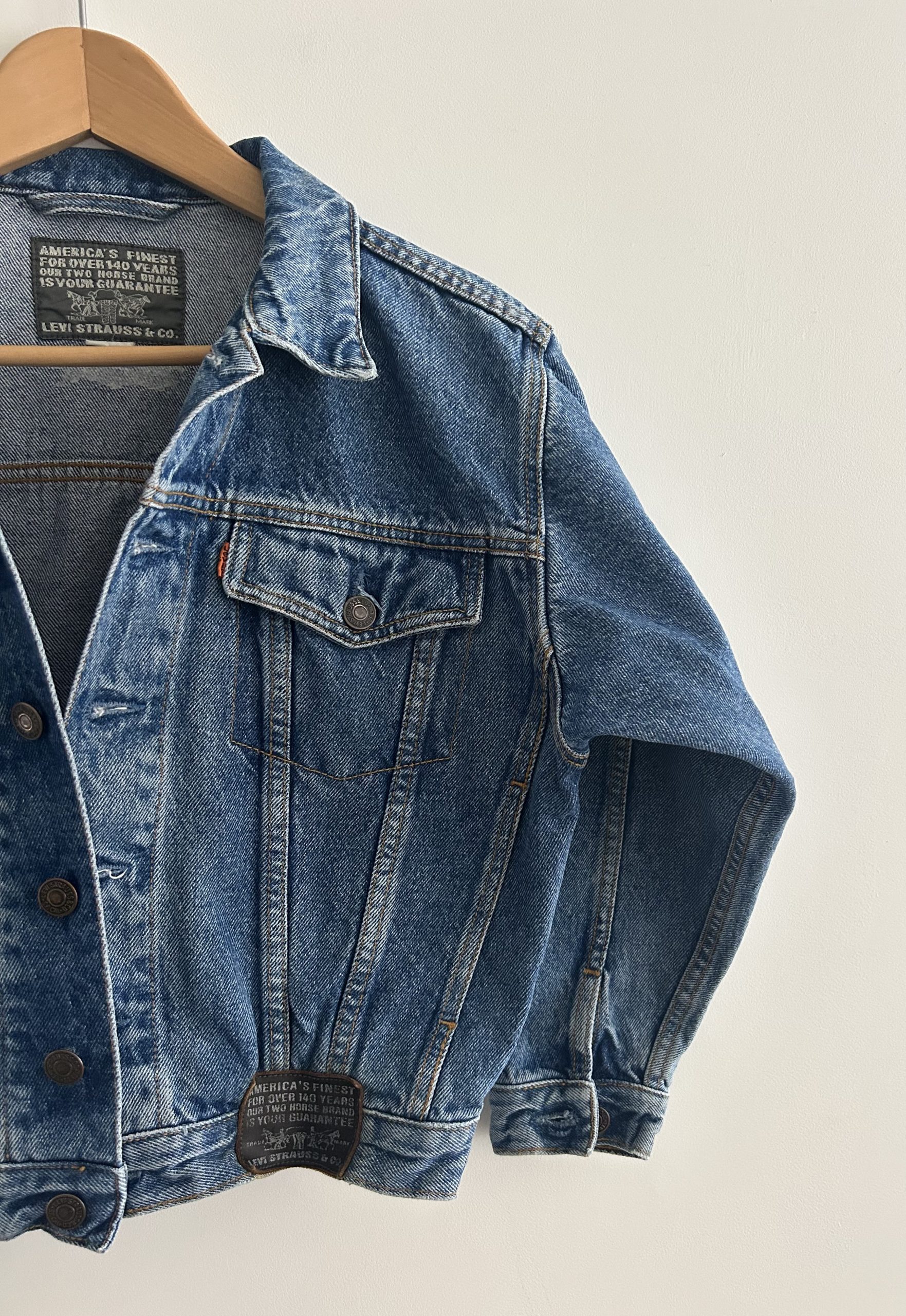 Levis orange tab denim jacket met zwarte patch op achterzijde. Boxy fit. Europese productie uit de 90s. Maatlabel: 10