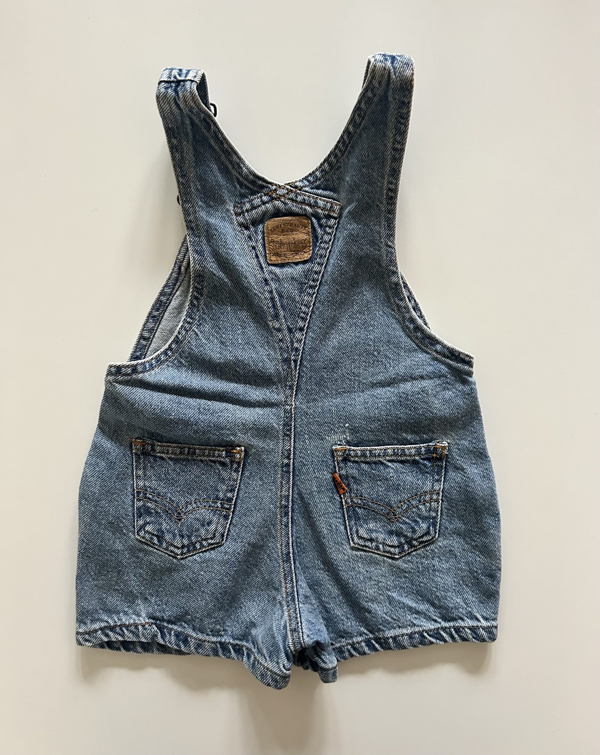 Levis orange tab denim shortall met drukknopen. Stevige kwaliteit. Made in Honduras. Maatlabel: 18 mnd (kan al eerder)