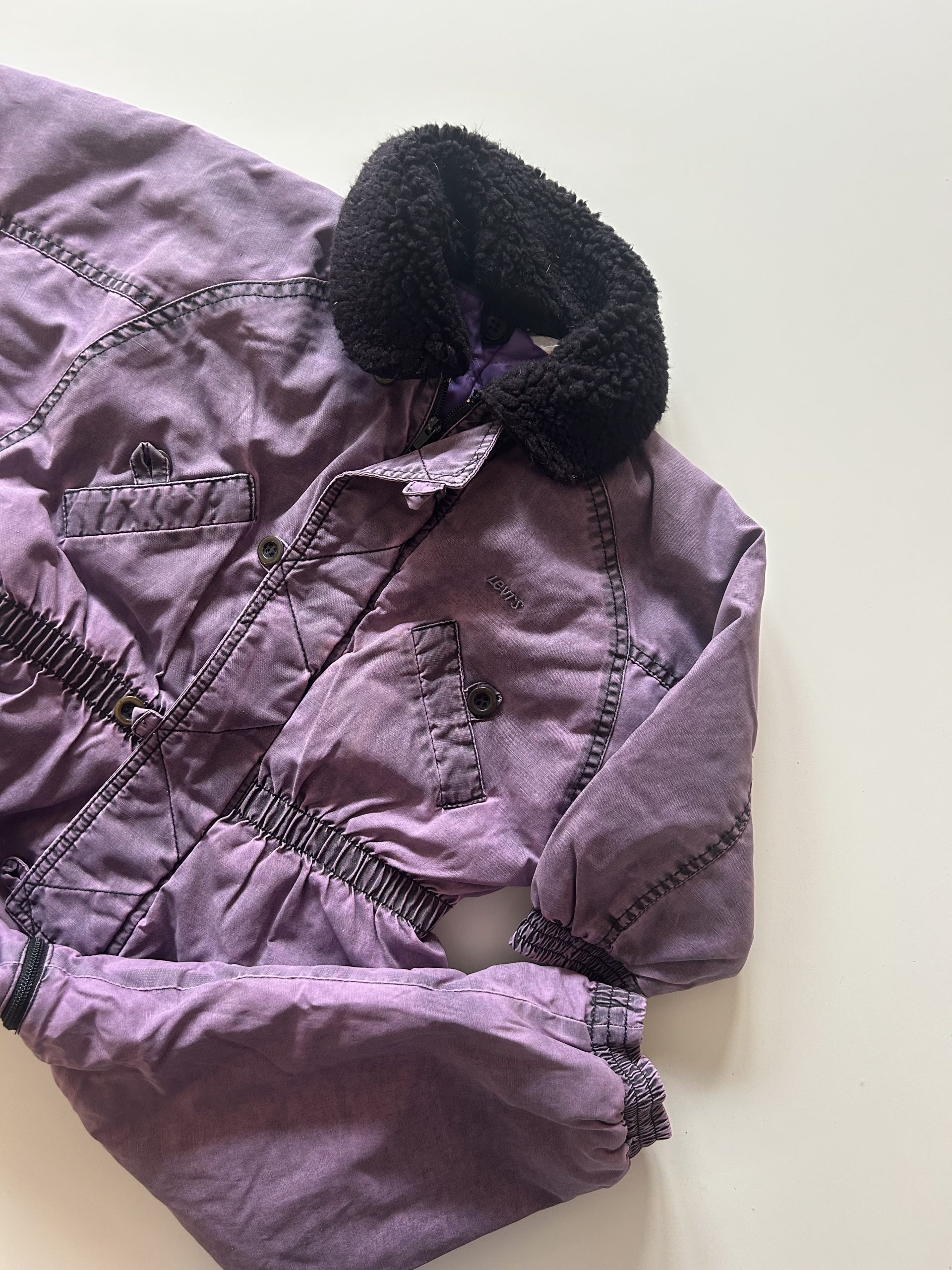Vtg Levis acid purple snowsuit. Met rits, knopen, helemaal gevoerd, afneembare bontkraag en elastische taille. Europese productie uit de 90s. Maatlabel: 2 jaar