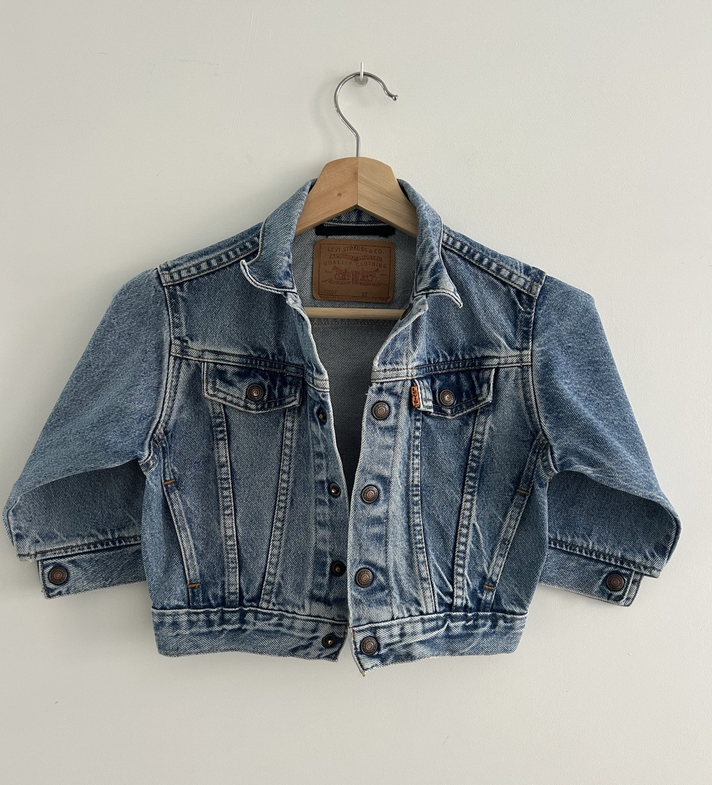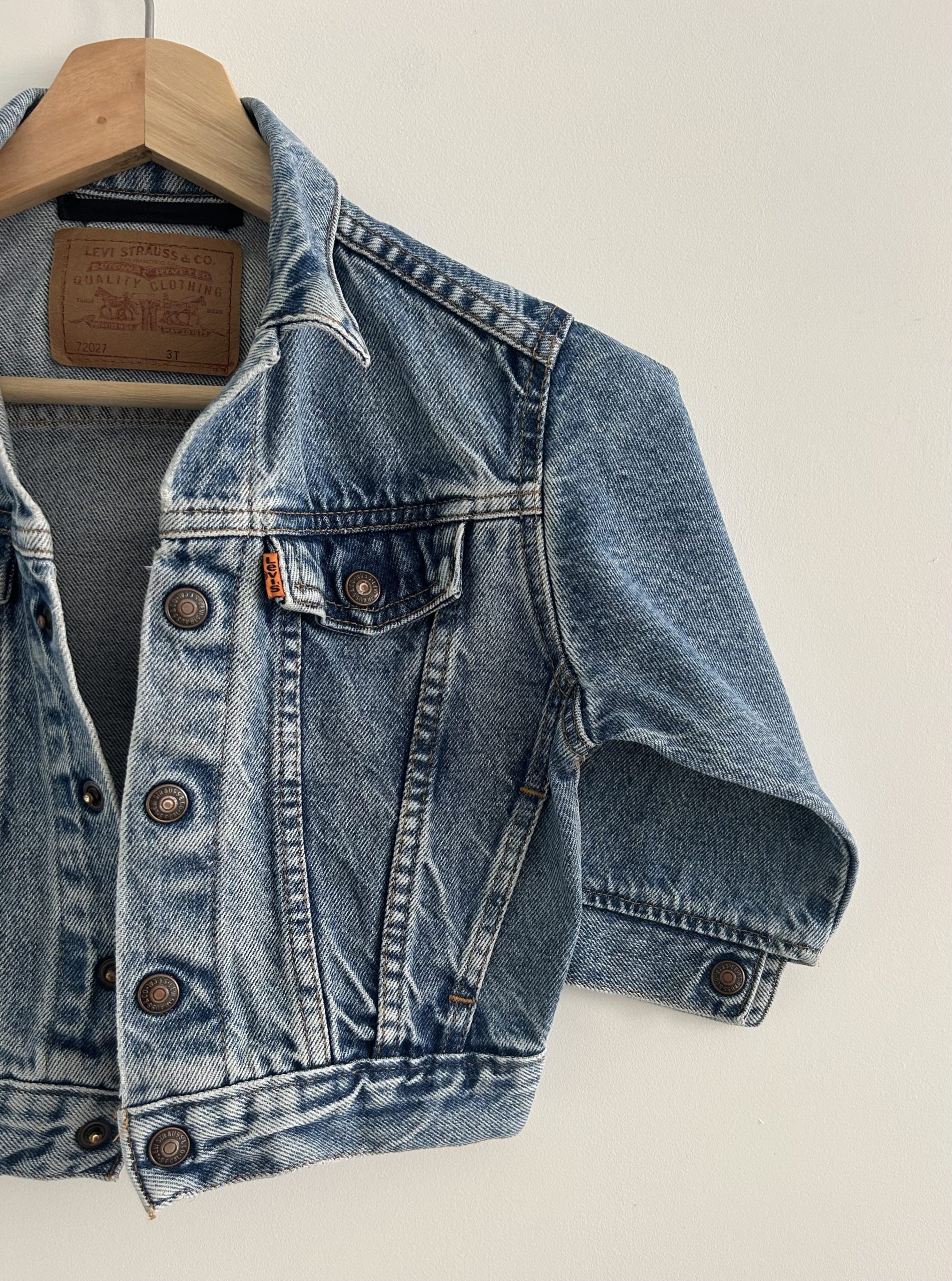 Levis orange tab denim trucker jacket. Boxy fit. Made in USA uit 1998. Maatlabel: 3T (2 jaar)