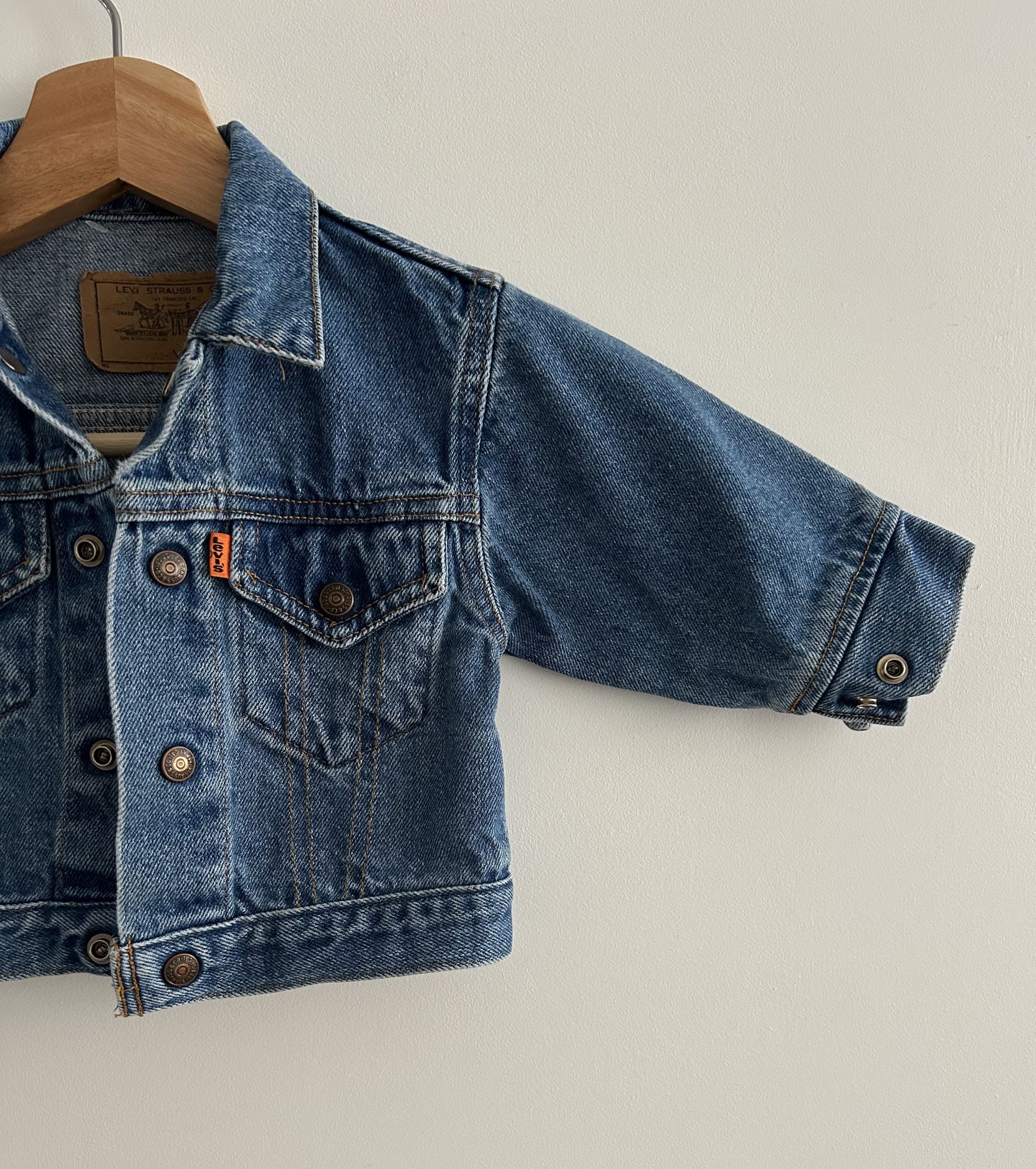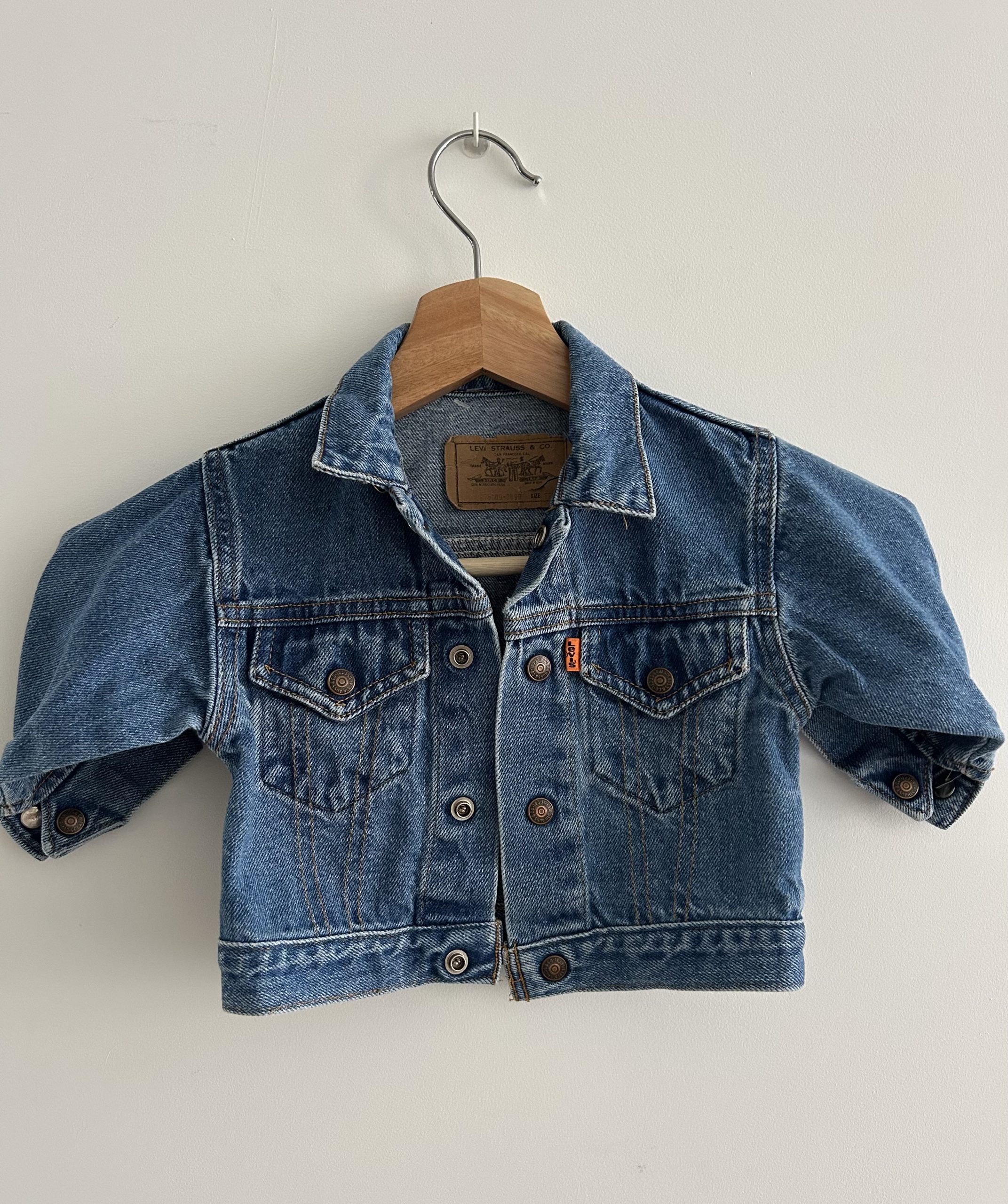 My first trucker! Little Levis orange tab denim trucker jacket. Made in USA uit 1995. Maat: 6-9 mnd ongeveer