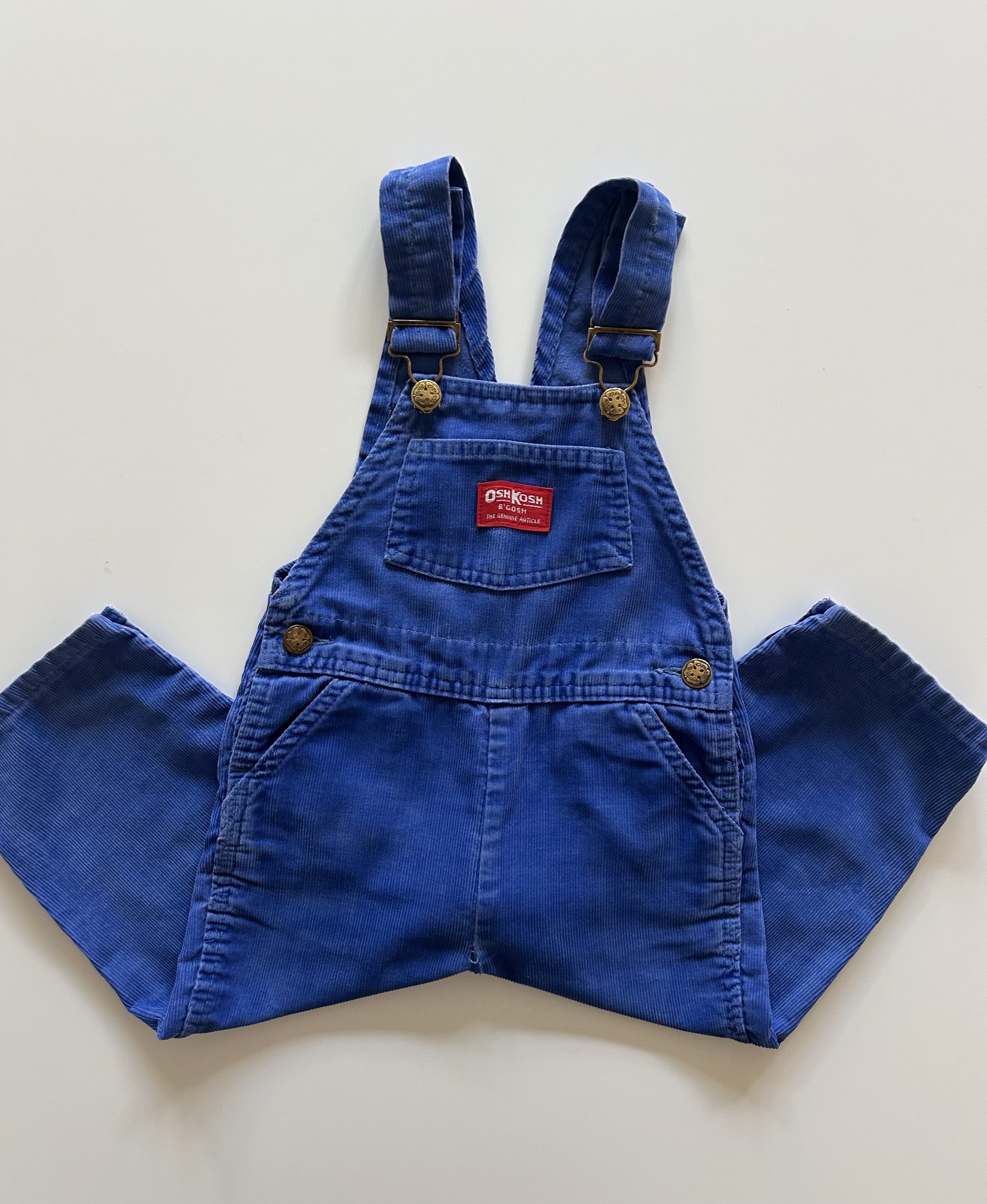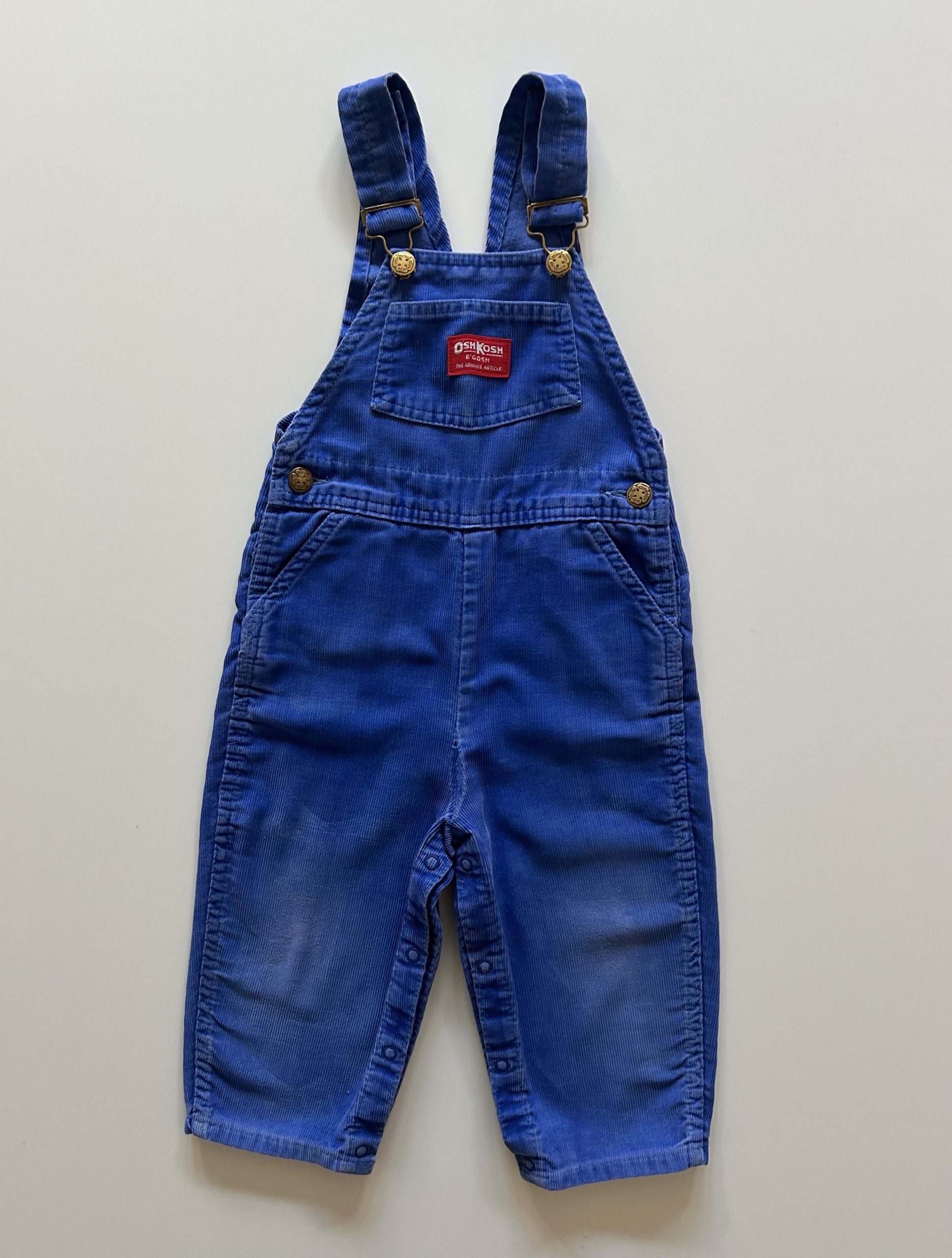 Oshkosh blue corduroy overall met drukknopen. Baggy fit. Vaal op de knieën en naadje voorzijde laat beetje los, makkelijk te fixen. Made in USA. Maatlabel: 3T (2 jaar)
