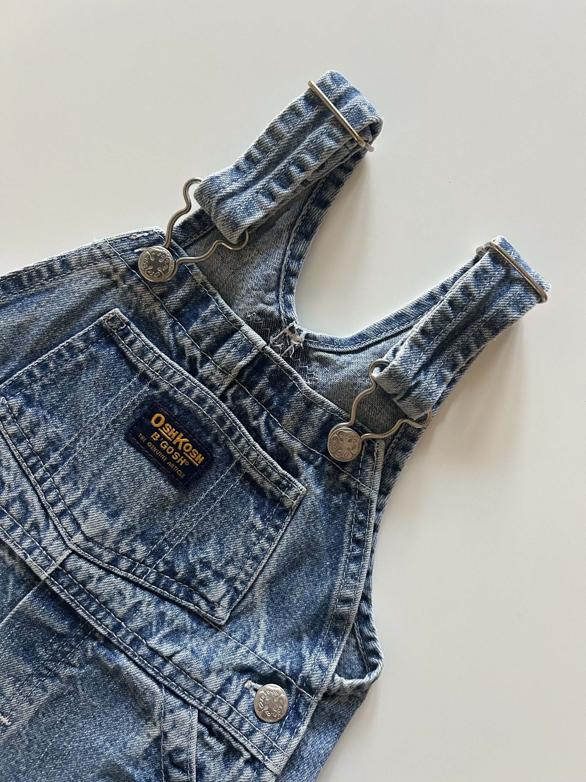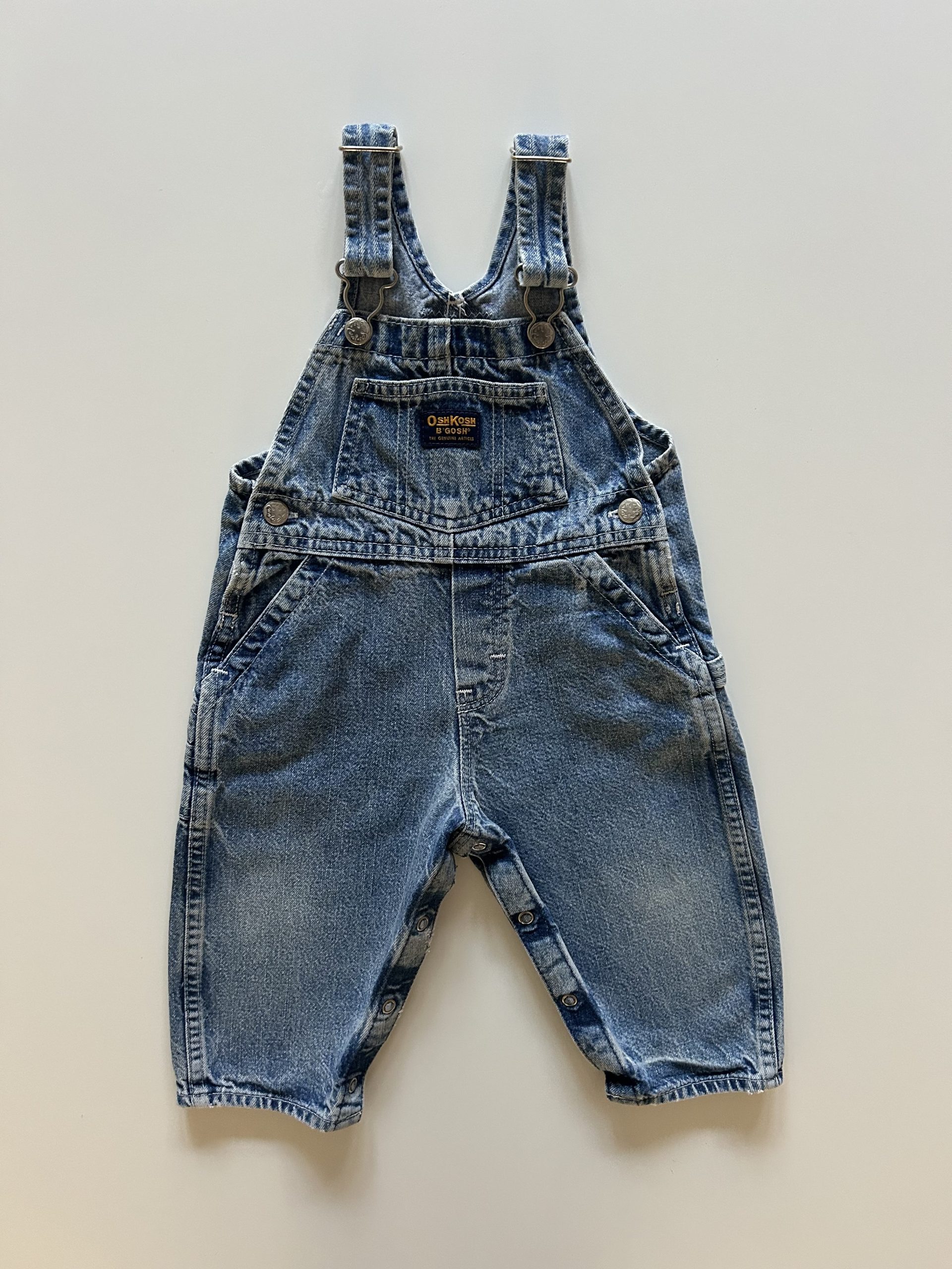 Oshkosh denim overall met drukknopen. In een medium wash, stevige kwaliteit en boxy fit. Made in Honduras. Maatlabel: 18 mnd (valt klein, meer 1 jaar)