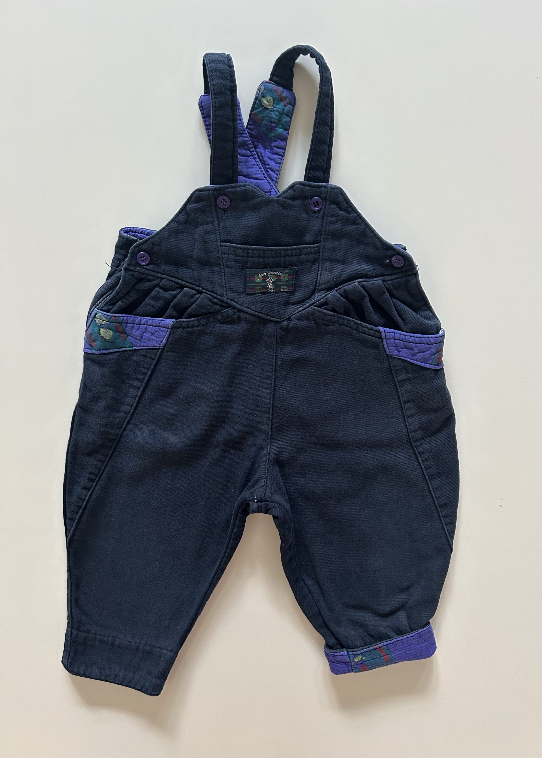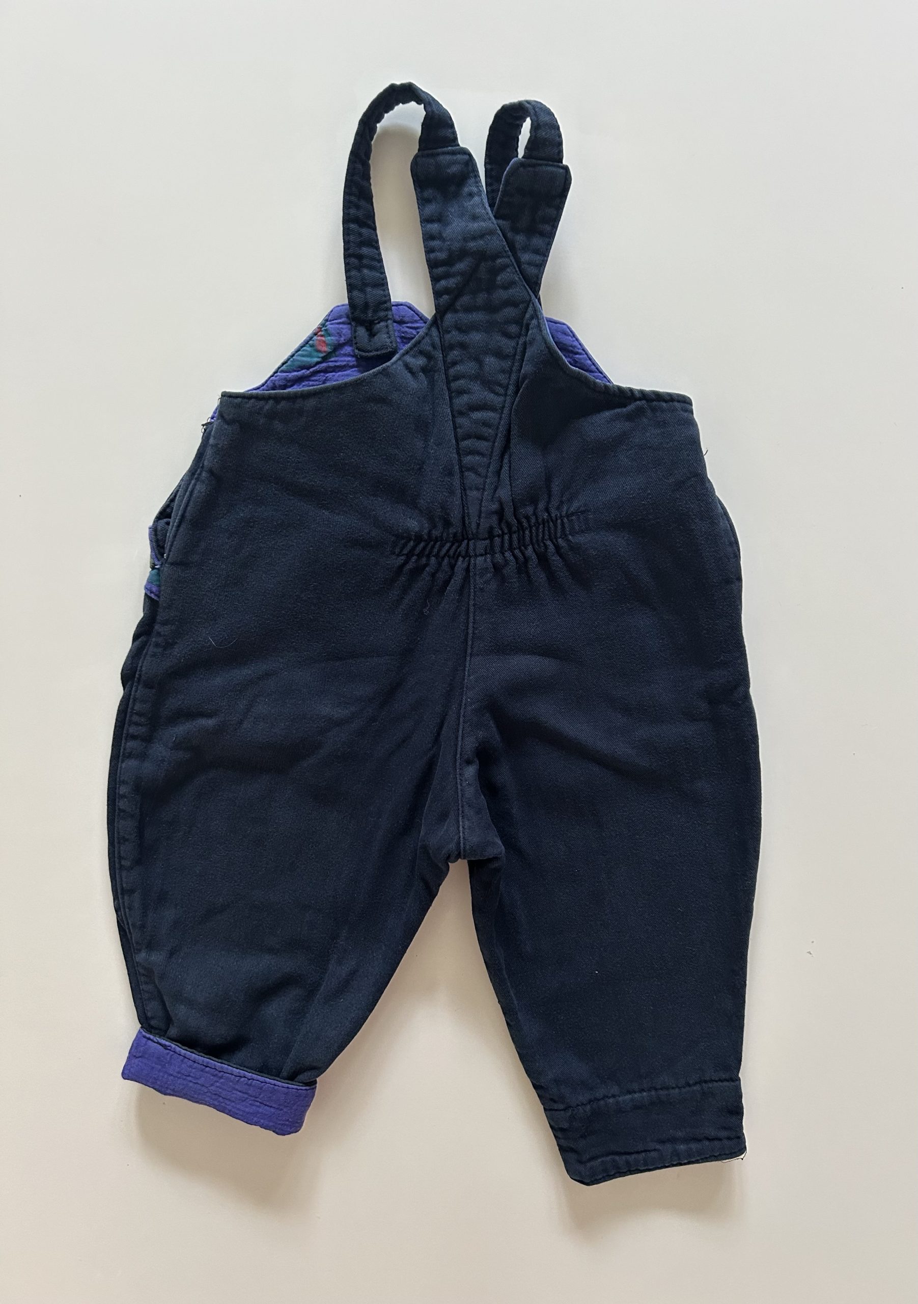 Vtg donkerblauwe overall met leuke details. 100% katoen. Baggy fit. Helemaal gevoerd, dus perfect voor het najaar. Maatlabel niet leesbaar: 1 jaar ongeveer