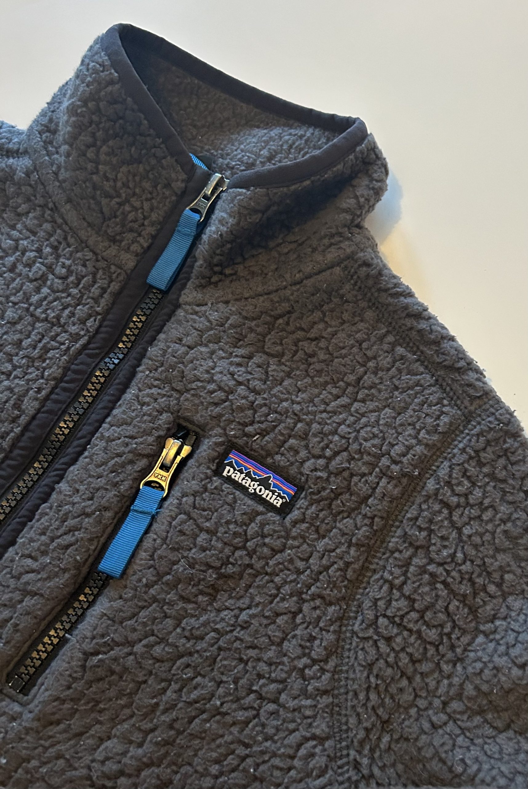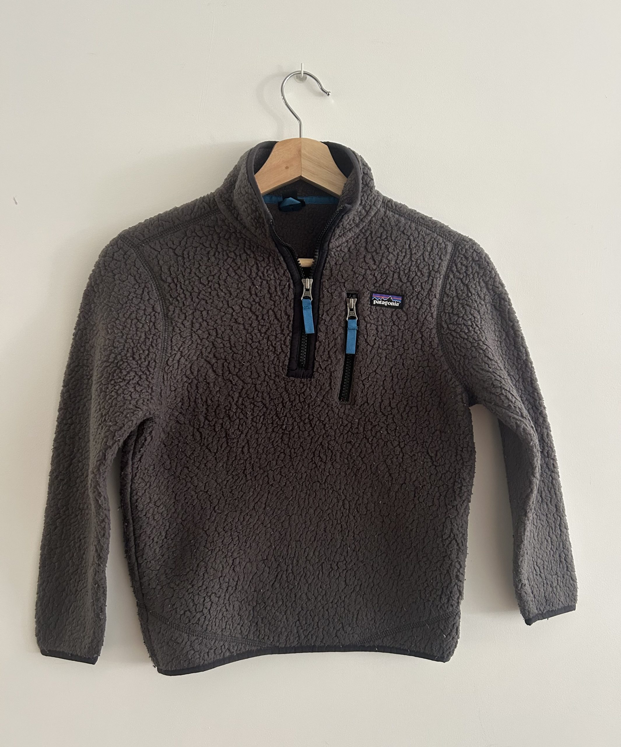 Patagonia 1/2 zipp grey fleece hoody met ritszak op de borst. Beetje pillig, verder goede staat. Made in Sri Lanka. Maatlabel: S (7-8 jaar)
