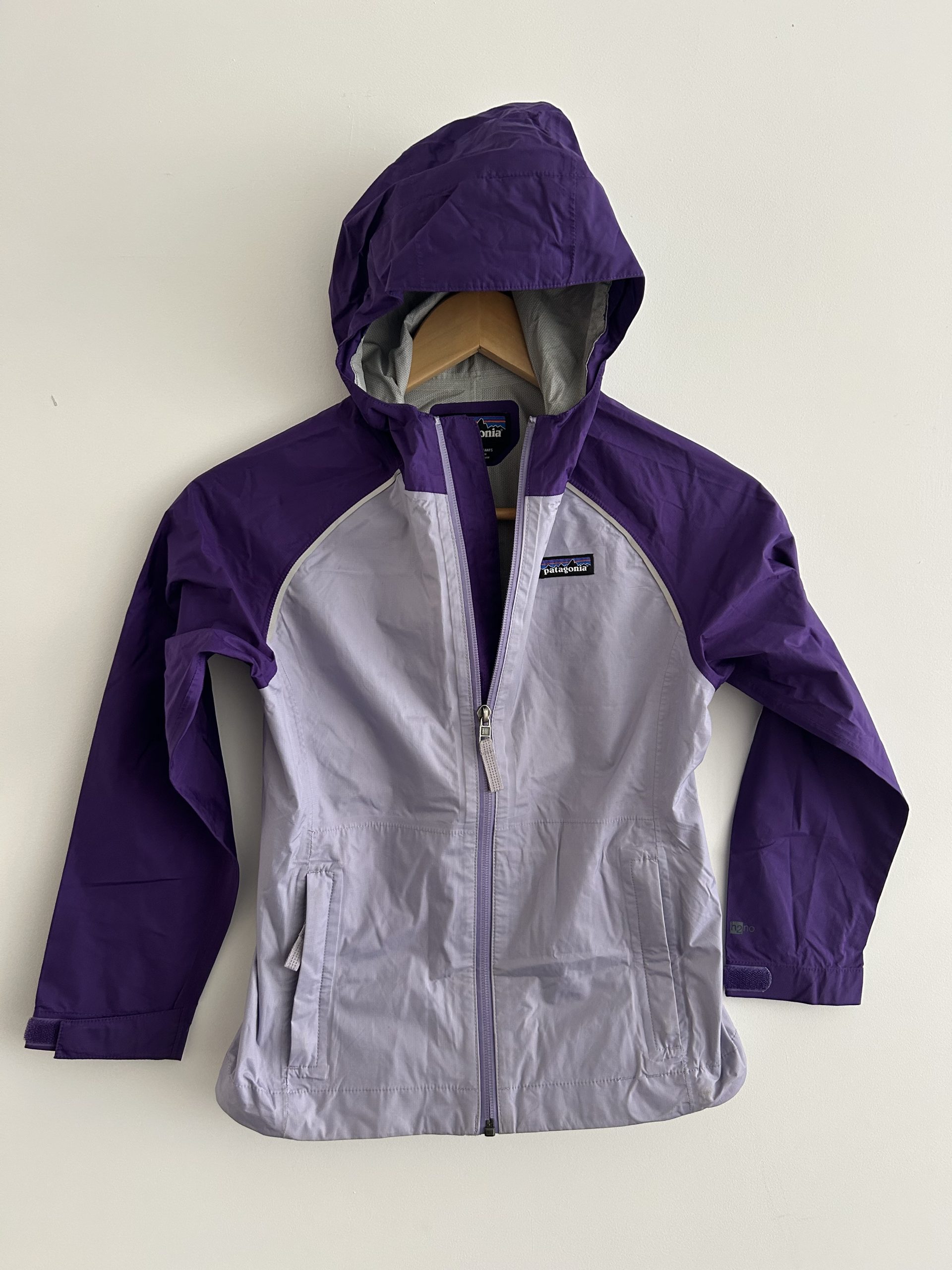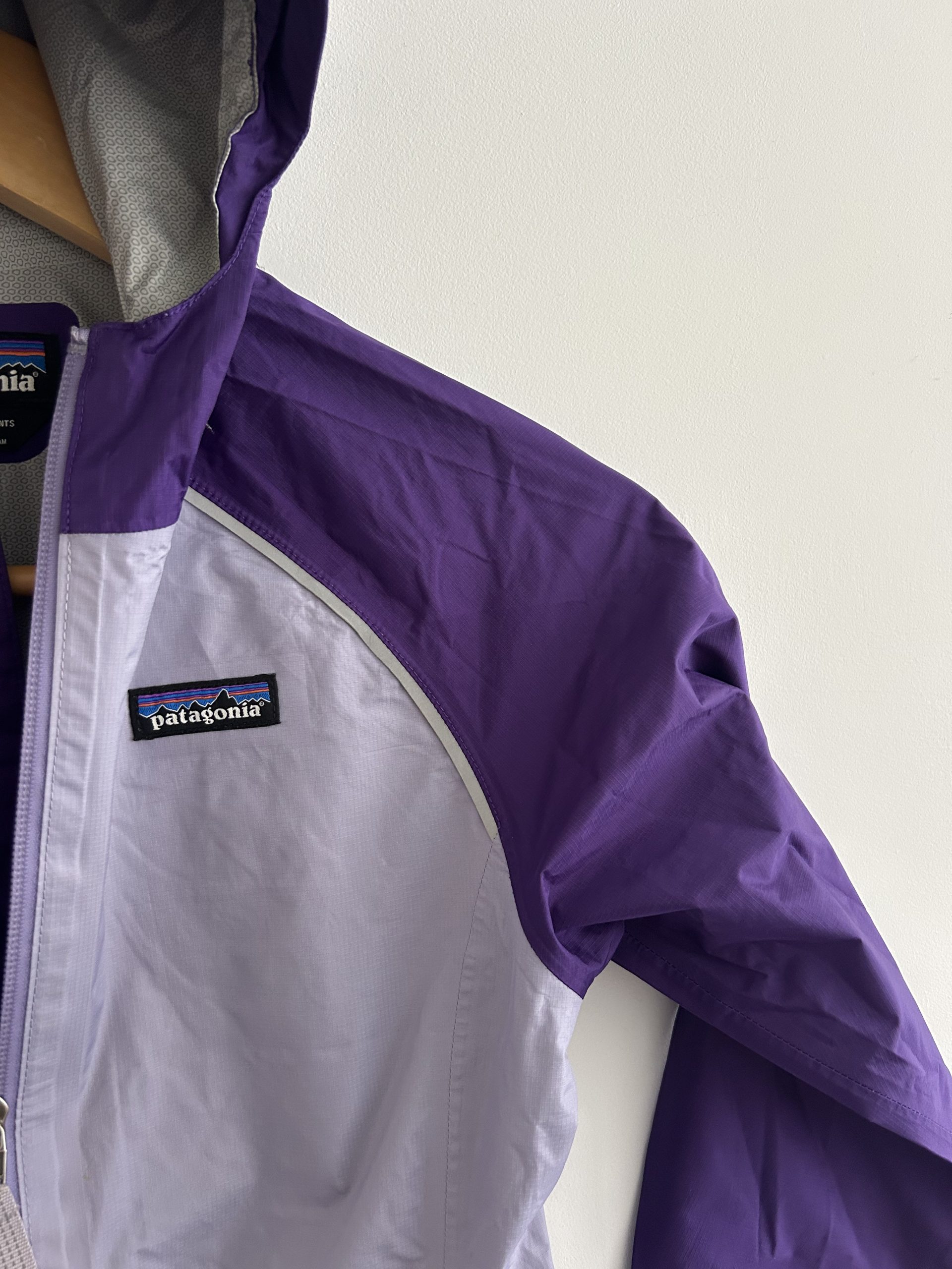 Patagonia purple/lila torrentshell Rainjacket. Waterdicht, ademend, 3-laags H2No® performance en versterkte rand bij de capuchon voor extra bescherming. Made in Vietnam. Maatlabel: S (7-8 jaar)